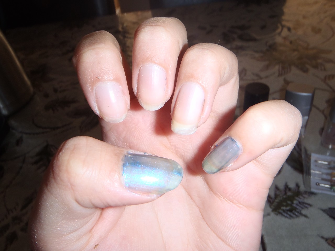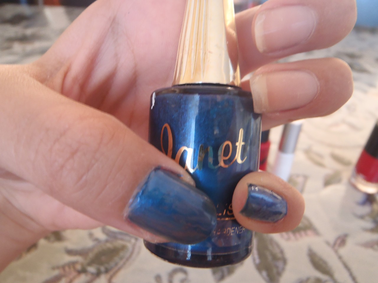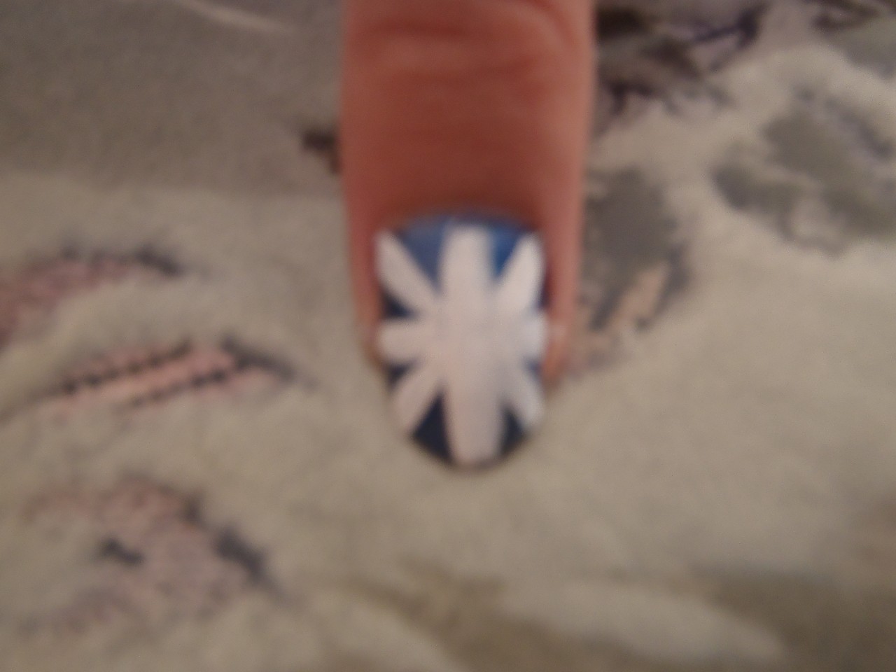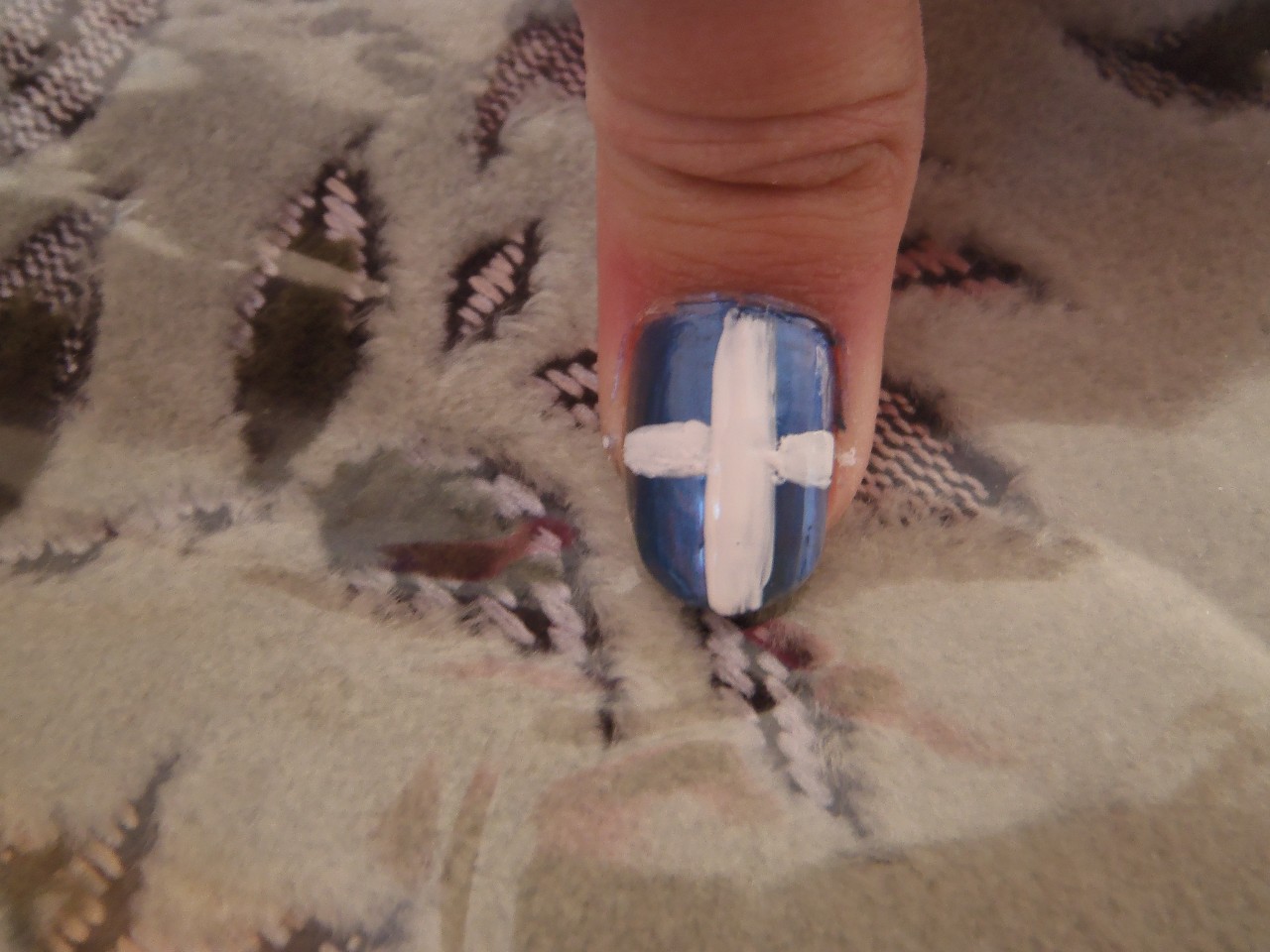 Stap 1 : Lak je duim en je pink donker blauw eerst een dun laagje en even laten drogen en dan weer een laag tot dat het mooi donker blauw word (ik heb zelf 1 a 2 lagen blauw over gedaan